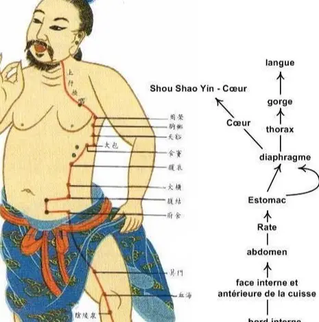 L’énergie circule notamment le long de conduits appelés méridiens, et, à partir de ces méridiens, se répand dans tout le corps pour insuffler son principe vitalisant à l’ensemble des constituants de l’organisme.